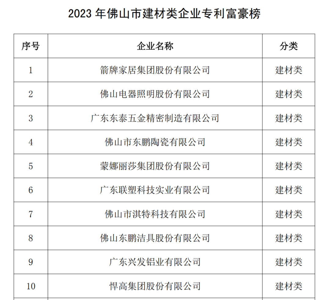 4月18日,佛山市知識產權協會對外公布了“2023年度佛山市十大專利富豪企業”名錄,佛山市淇特科技有限公司入選“2023年度佛山市建材類企業專利富豪榜”,位列第七。
